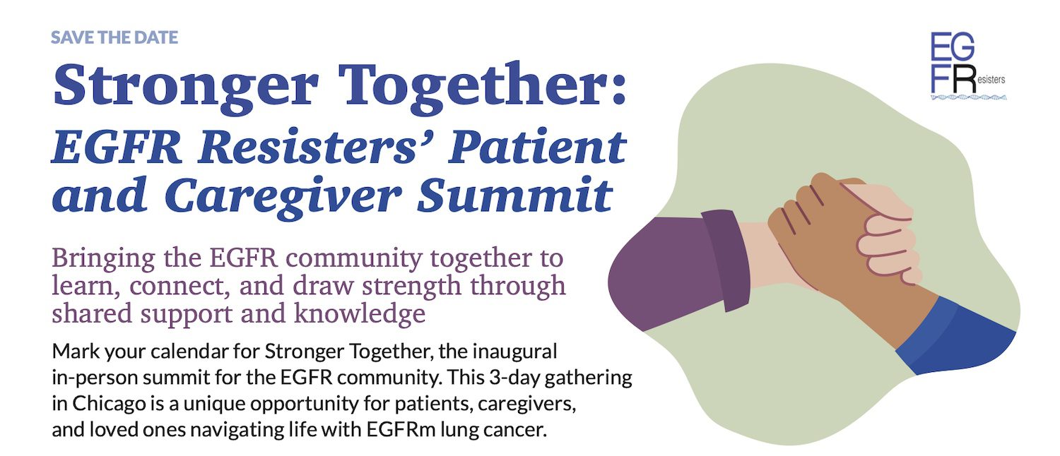 The EGFR Resisters is a global community of patients and caregivers impacted by EGFR-positive lung cancer. We’re here to share knowledge, offer support and collaborate to drive progress in research and care. We are here to share treatment experiences, information about clinical trials, breaking news about research developments, and other information with each other.